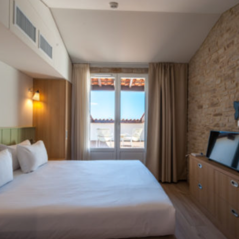 Escapade romantique à deux, week-end entre amis, semaine de vacances en famille : l’hôtel Les Grenettes vous souhaite la bienvenue sur l’île de Ré. Pour répondre aux besoins de tous les vacanciers, notre établissement dispose de chambres spacieuses et confortables doubles, triples et quadruples avec accès libre à la piscine. Notre hôtel à 30 minutes des Portes-en-Ré dispose de 2 gammes de chambre Ile de Ré, disposant chacune respectivement de 4 et 5 types de chambres. Wifi, réfrigérateur, coffre-fort, téléviseur, toutes les chambres vous réservent des prestations de confort exceptionnelles pour votre séjour à l'hôtel près des Portes-en-Ré. Vous aimez l’autonomie que vous offrent les locations de vacances ? l’hôtel des Grenettes dispose aussi d’un appartement avec cuisine, qui peut être loué en configuration 2 à 4 personnes ou en configuration 4 à 6 personnes. Dans le premier cas, il est de plain-pied et entièrement adapté aux personnes à mobilité réduite. Il est pourvu d’une chambre à lit double et d’un canapé convertible. Dans le second cas, il dispose d’une chambre supplémentaire en duplex, dotée de deux lits simples. Sa terrasse vous offre un agréable accès à l’extérieur.